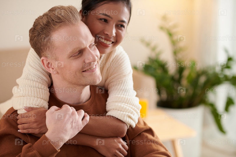 Счастливая обнимающая молодая пара