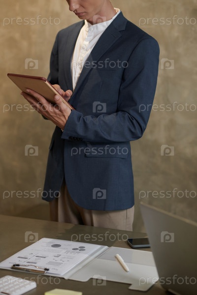 Предприниматель проверяет данные на планшете