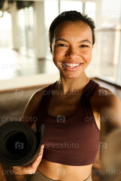 Молодая женщина делает селфи-портрет в спортзале