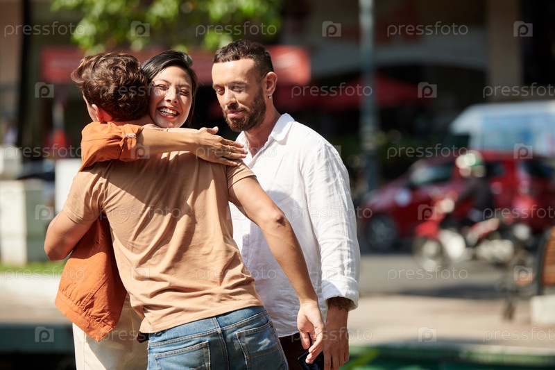 Женщина обнимает своего друга или коллегу