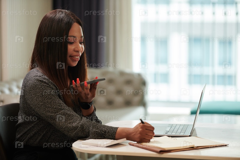 Предприниматель слушает голосовое сообщение от коллеги