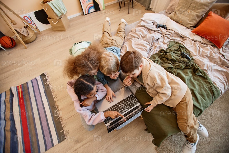 Дети смотрят на компьютерный экран вместе