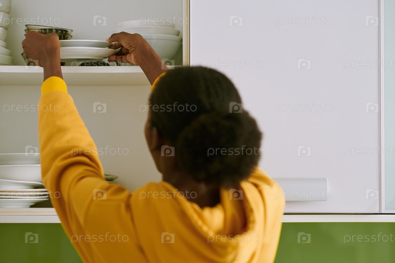 Женщина, кладущая тарелку в шкаф