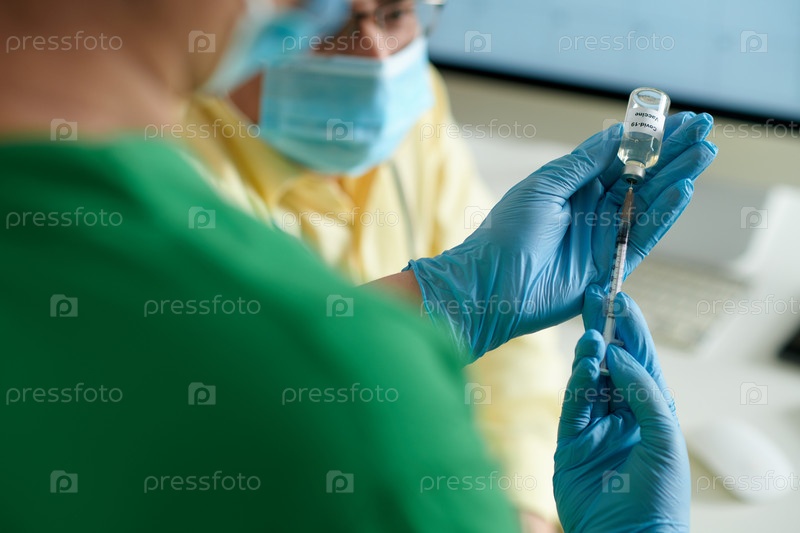 Медсестра заполняет шприц вакциной