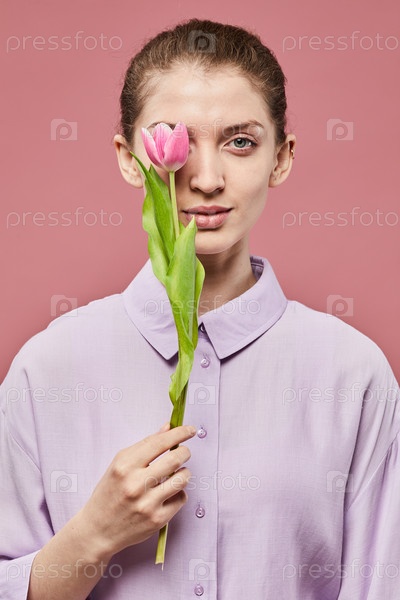 Молодая женщина с цветочным минимальным портретом