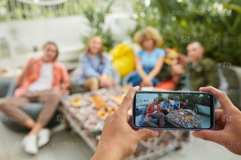 Мужчина, фотографирующий друзей