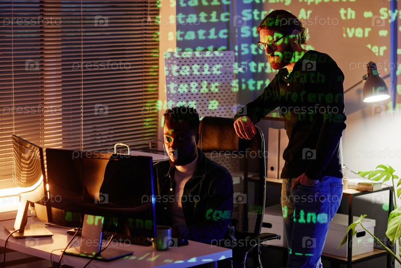 Две молодые межкультурные разработчики программ смотрят на компьютерный экран