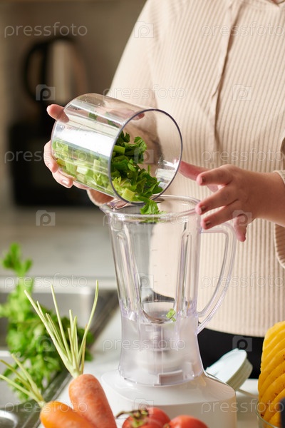 Женщина, делающая сельдерейный смузи
