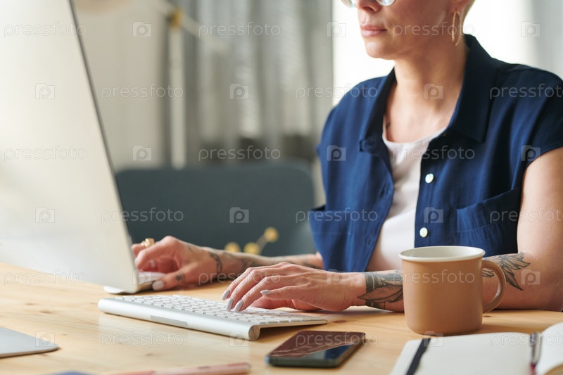 Женщина, работающая на компьютере из дома
