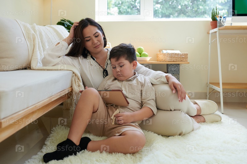Мать и сын смотрят шоу эпизод