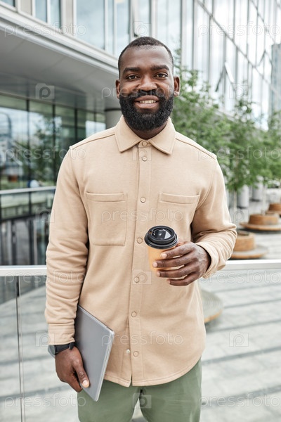 Улыбающийся внештатный работник на открытом воздухе