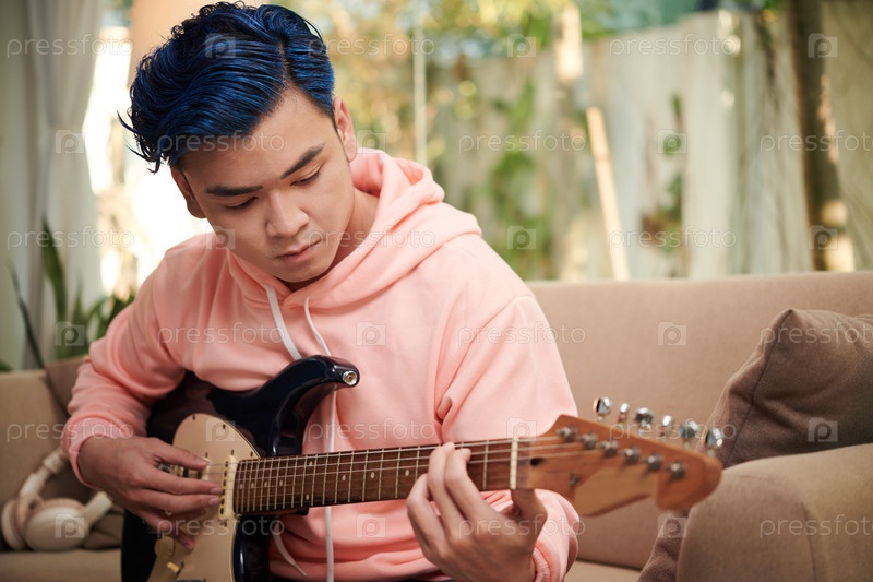 Молодой человек играет на гитаре