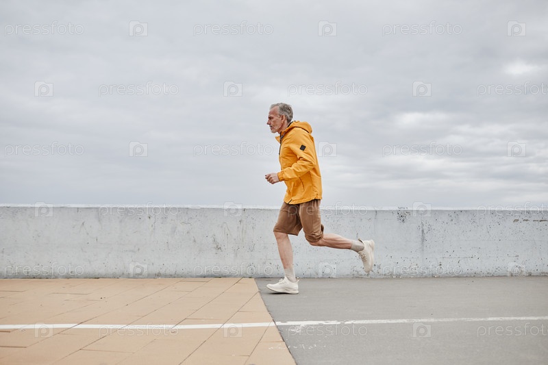 Зрелый мужчина, бегущий по городу минимум
