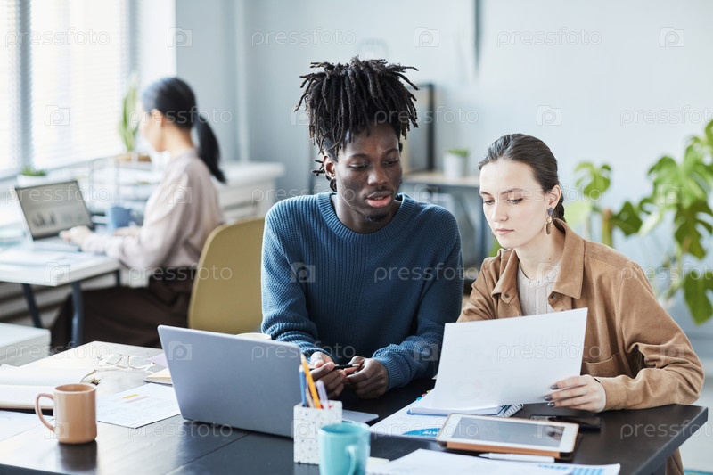 Молодые коллеги, работающие в офисе