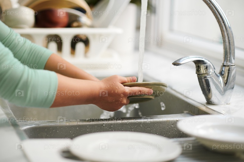 Девушка, которая моет посуду