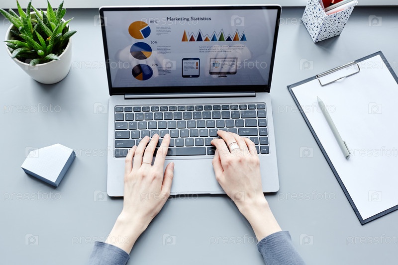 Деловая женщина, занимающаяся исследованиями Top View