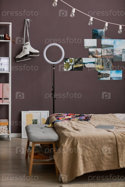 Интерьер комнаты для подростков с удобной кроватью предметы хобби