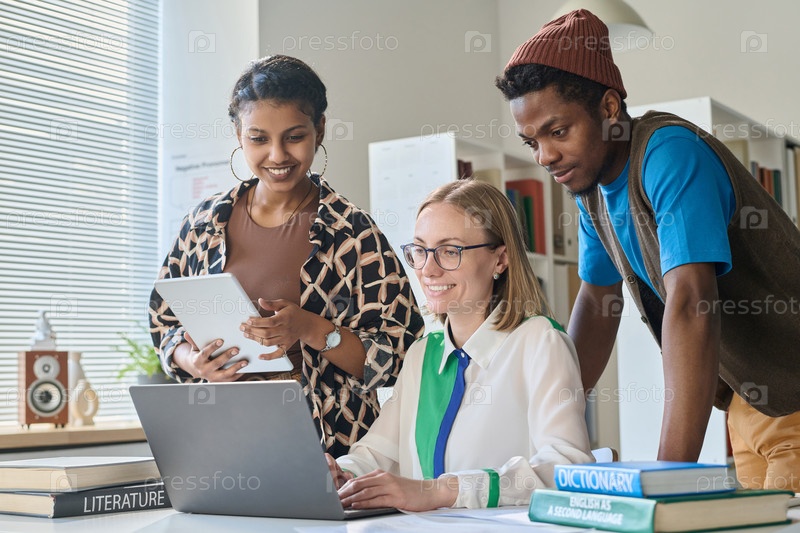 Учитель показывает студентам видео на ноутбуке