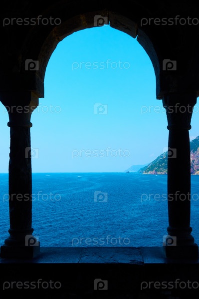 Море сквозь колонны церкви Святого Петра в Порто-Венере