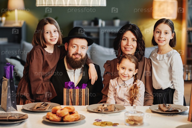Счастливая еврейская семья за обеденным столом