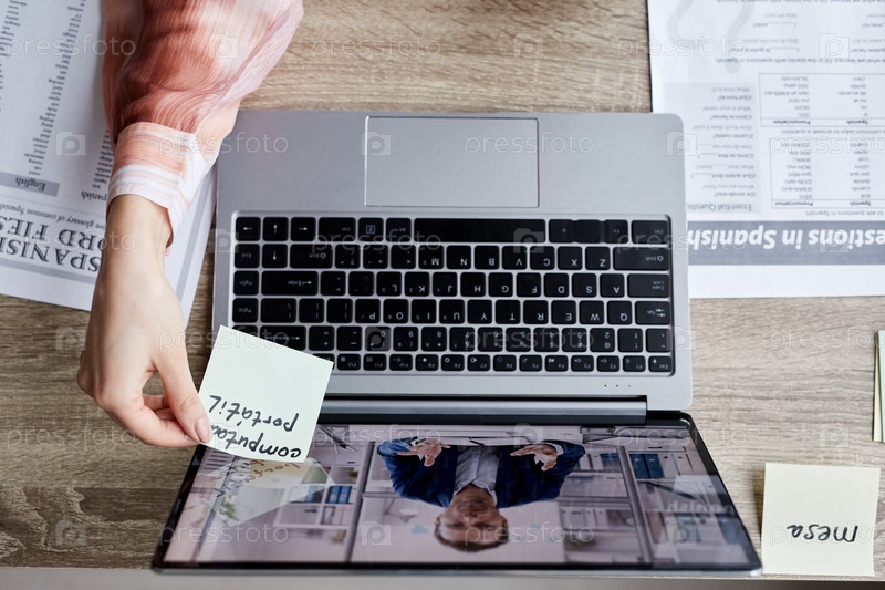 Верхний угол ноутбука с репетитором на экране, объясняющим новый предмет