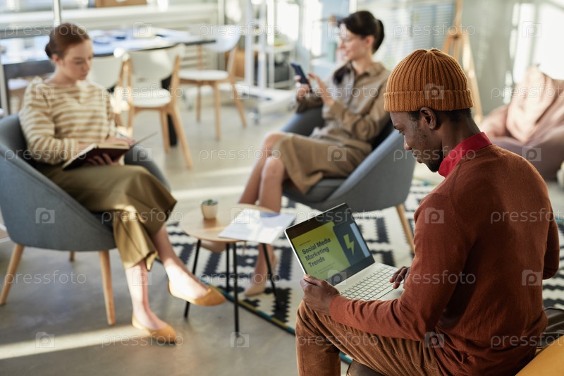 Черный молодой человек занимается маркетинговыми исследованиями