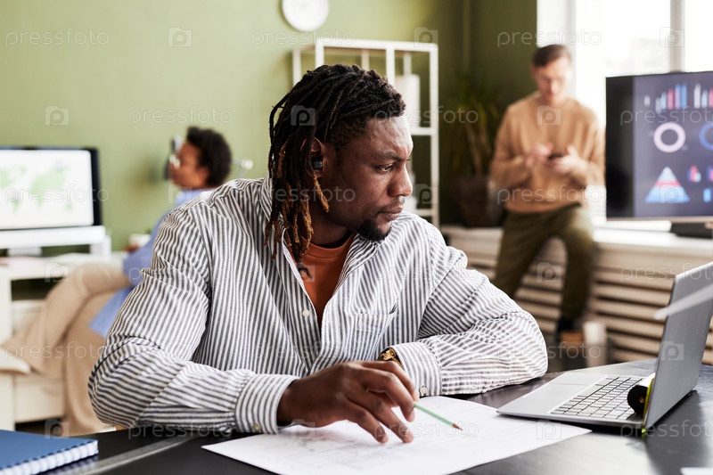 Архитектор использует ноутбук, чтобы нарисовать чертежи