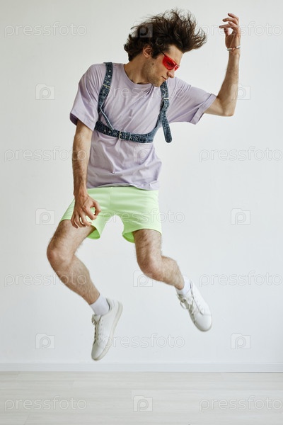 Молодой небинарный человек прыгает в воздух