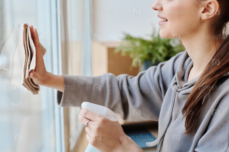 Женщина, убирающая окна дома