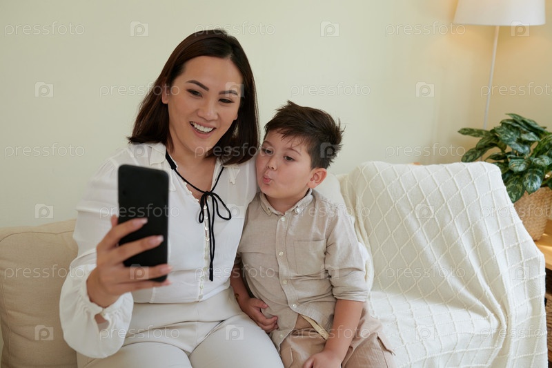 Мать и сын делают селфи