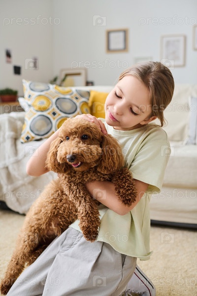 Маленькая девочка обнимает свою милую собаку