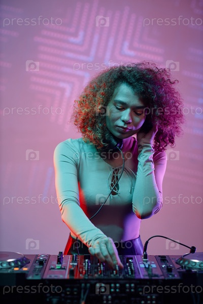 Молодая женщина-диджей делает музыку