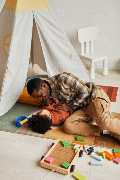 Молодой отец играет с маленьким сыном
