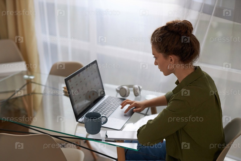 Молодая женщина заказывает онлайн доставку продуктов питания