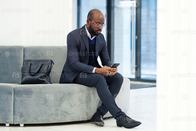 Бизнесмен, ожидающий встречи в фойе
