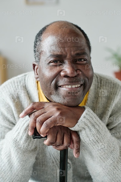 Счастливый африканский старший мужчина дома