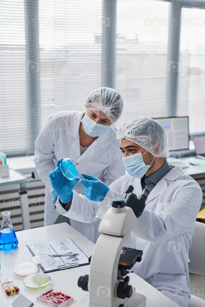 Ученые, работающие с образцами в команде
