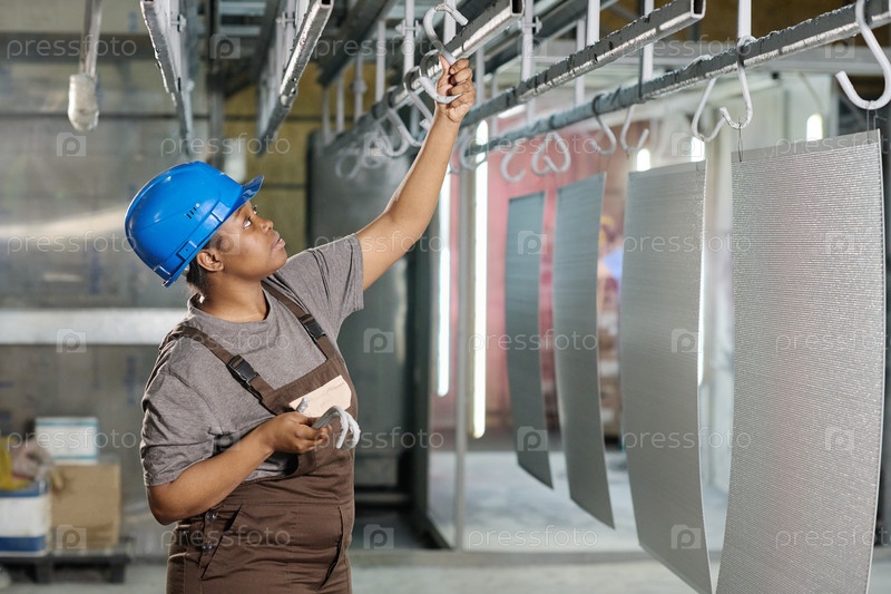 Африканская рабочая женщина, работающая с продуктами на фабрике