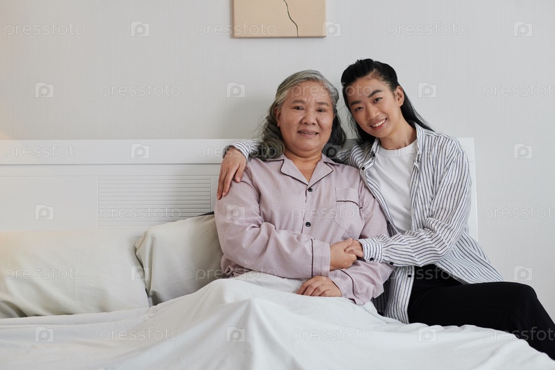 Женщина обнимает больную молодую мать