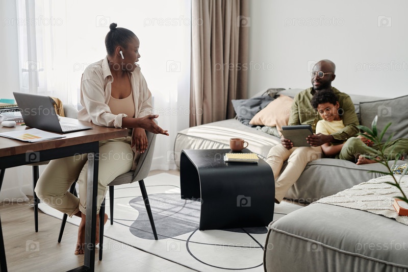 Мать, работающая онлайн на ноутбуке дома