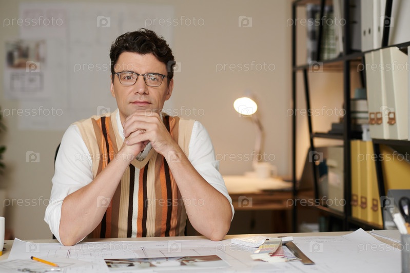 Архитектор, работающий с чертежами