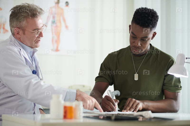 Военный человек подписывает страховые документы