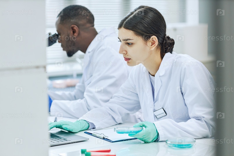 Молодая женщина с Ближнего Востока, работающая на исследованиях в лаборатории