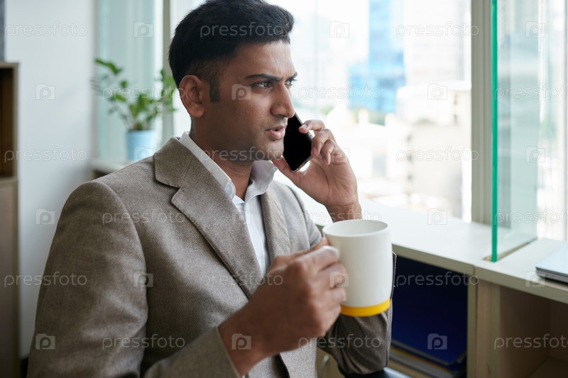 Серьезный предприниматель пьет утренний кофе