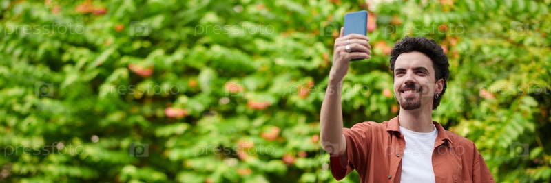 Улыбающийся мужчина видео звонит другу
