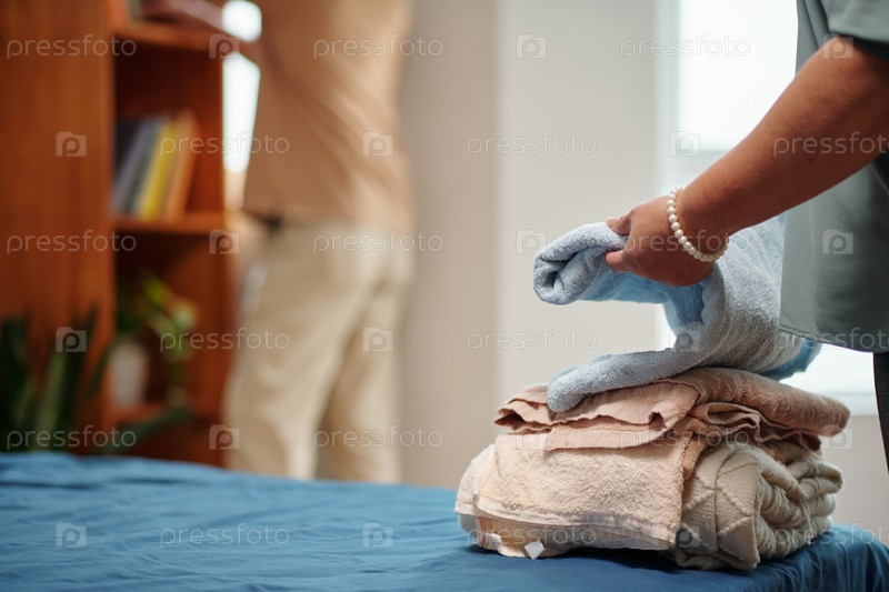 Пожилая женщина чистые полотенца