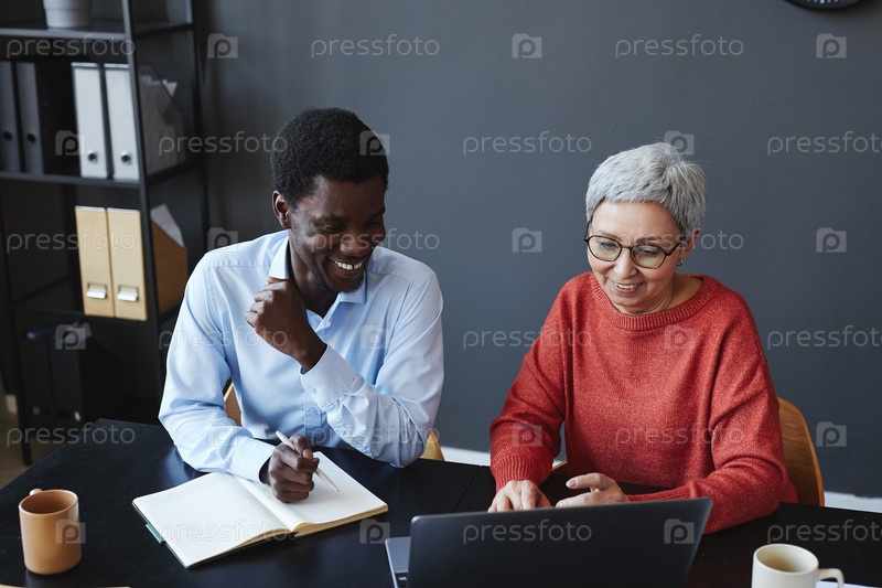 Старшая деловая женщина, работающая с молодой коллегой за столом в офисе