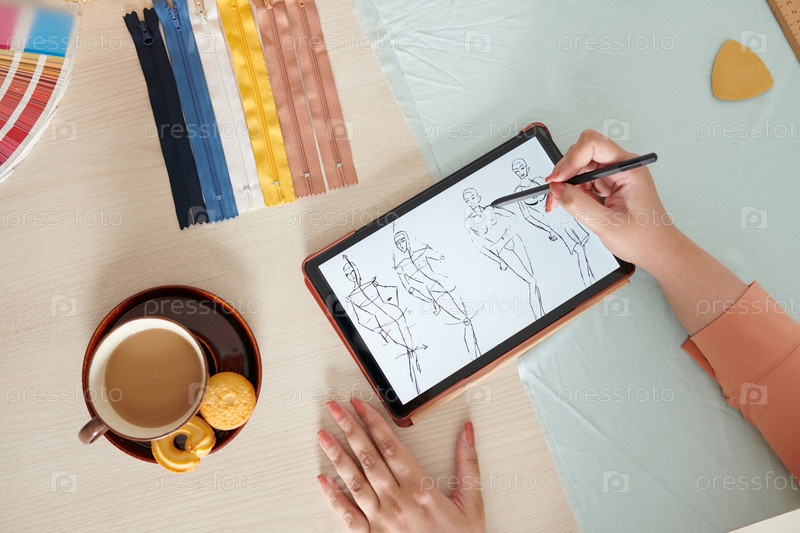 Дизайнер рисует модный эскиз