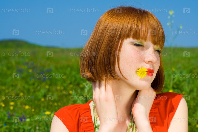 Рыжеволосая девушка с одуванчиком