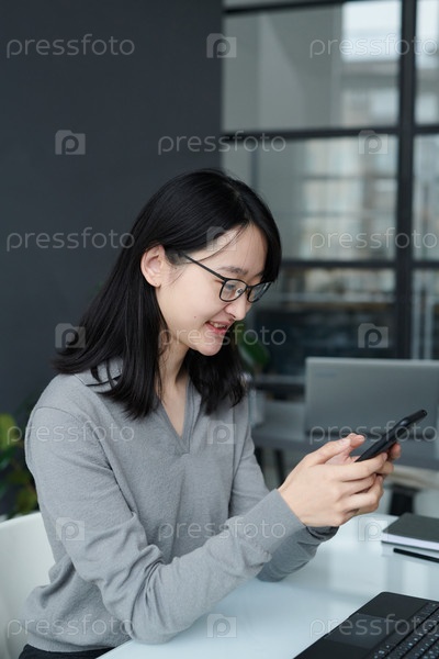 Деловая женщина читает сообщение на смартфоне